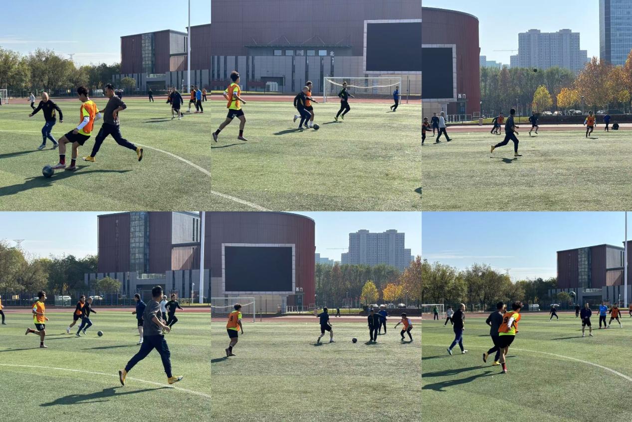 本次交流赛旨在以足球为媒介,搭建一个超越课堂的师生互动平台。正午时分,阳光正好,双方队员早早来到赛场热身,场边聚集了众多前来观战助威的师生,气氛热烈友好。比赛过程中,双方你来我往,攻守交替,场面十分胶着。巧妙的过人、精彩的扑救和势大力沉的射门,引得场边掌声、喝彩声不断。经过激烈的角逐,由教师与研究生代表组成的“退隐江湖”联队以4:3的比分险胜活力四射的本科生代表队。