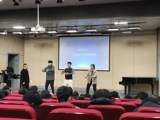 迟会长系统梳理了中国茶文化从药用、食用到品饮,直至升华为一种修心艺术与的发展历程,并用生动幽默的语言讲述了茶文化在推动炎黄文明国际化传播方面的重要作用。随后,他从武术的基本站桩与呼吸切入,揭示了茶艺与中华武学的共通智慧,示范指导学生练习八段锦中的几个基本动作,让大家切身体会身体中正、气息下沉的感觉。最后,他号召全体学生“以武修身、以茶养性”,在传承茶道和弘扬武术精神中坚定文化自信。